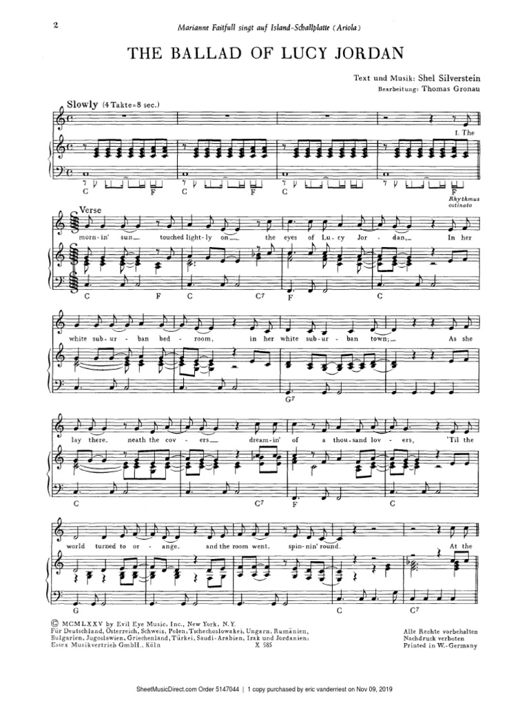 Source: motiledcelo.pages.dev Marianne Faithfull The Ballad Of Lucy Jordan Discogs , "The Ballad of Lucy Jordan" happens to have been written the same year that Fear of Flying was published The morning sun touched lightly on The eyes of Lucy Jordan In her white suburban bedroom In a white suburban town, As she lay there 'neath the covers, Dreaming of a thousand lovers, Till the world turned to orange And the.